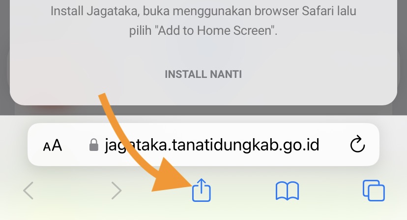 Buka Jagataka menggunakan browser Safari lalu pilih "Add to Home Screen"